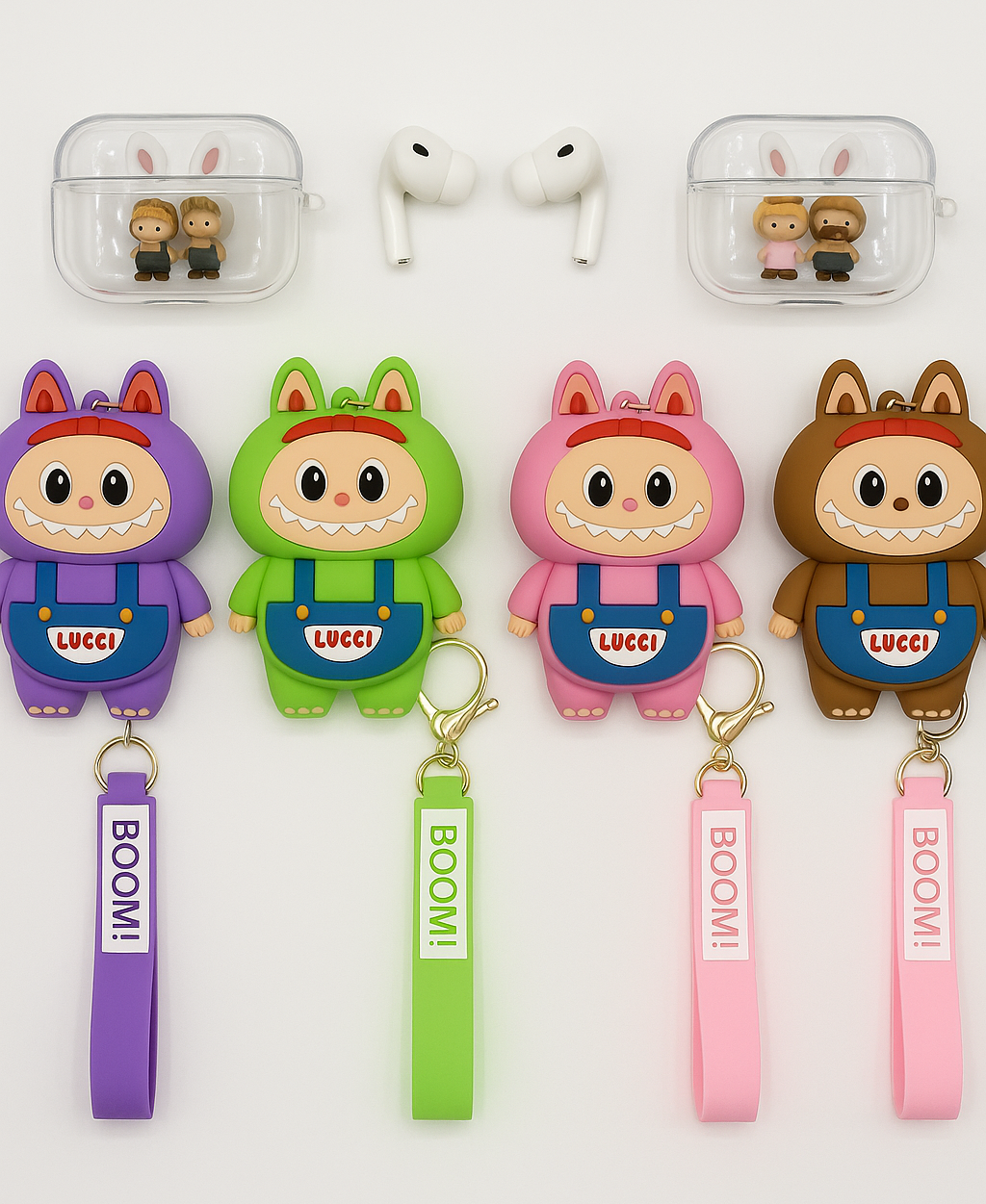 Add a pop of fun to your AirPods with these adorable monster-style cartoon cases! Designed with vibrant colors and detailed 3D characters, these protective cases come with a matching "BOOM!" wrist strap and cute keychain—perfect for kids, teens, or anyone who loves playful accessories.